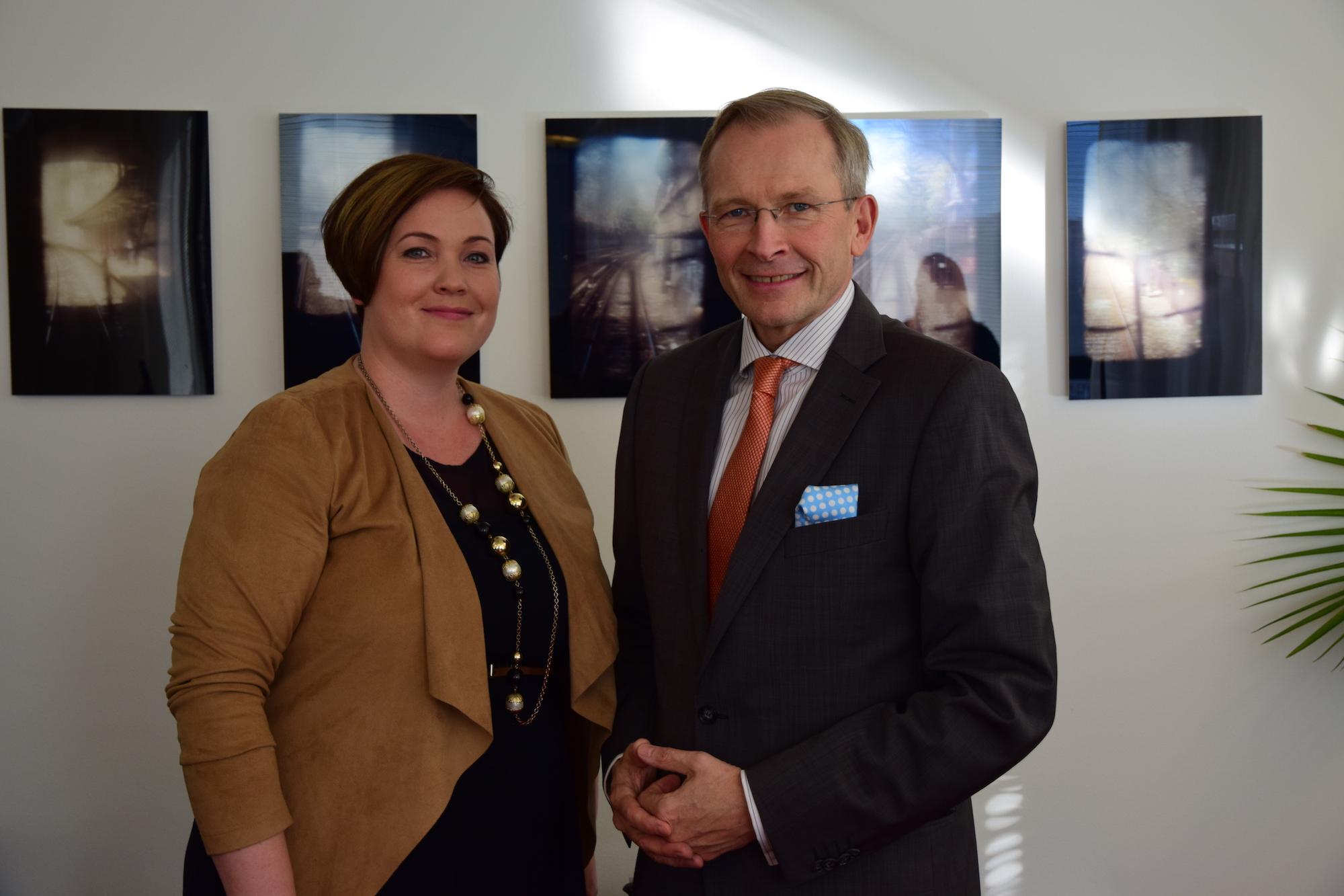 Suomen Nuorkauppakamareiden kansallinen puheenjohtaja Mervi Vuorinen ja Keskuskauppakamarin toimitusjohtaja Risto...
