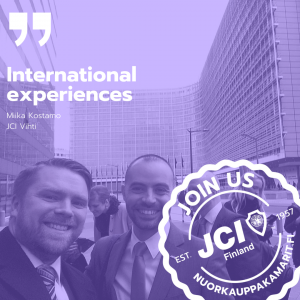 “Working abroad and getting interested in international activities were my original reasons for joining JCI. Now seven years later I can say that I got way more than I expected. Through JCI I have gotten to organize several international events and seminars, participate to JCI Europe’s social media team, follow a MEP in Brussels for a week, visit the only wine factory in Bali, learn business culture with JCI Gangnam in Seoul and organize virtual business content for European JCI members with chapter members from 10 different countries. Overall, I can say, that in addition to hundreds of new friends and experiences, JCI has also changed my world view and made me see the meaning of building mutual trust in all international activities.”